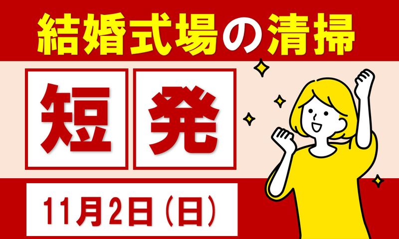【仕事内容】 披露宴会場でのフラワーシャワー後の片付けをはじめ、館内や外回りの清掃をお任せします。 仕事の流れは先輩スタッフが一つひとつ丁寧に教えてくれるので、アルバイトが初めての方も安心してスタートできます。 会場は公共交通機関でのアクセスが難しいため、車で通勤できる方を積極的に募集しています。 【具体的な仕事内容】 ・披露宴会場でのフラワーシャワー後の片付け ・会場内のテーブルやイスの整頓・清掃 ・館内各所(ロビー・通路・トイレなど)の清掃 ・外回り(玄関・駐車場周辺など)の清掃 ・ゴミの回収や分別 ・備品の片付け・整理整頓 【身だしなみについて】 ■服装 ・黒のスーツ ・襟付きの長袖ブラウス ・黒のズボン ■靴 ・黒のローファーまたはパンプス ■髪型・髪色 ・髪色は黒のみ(茶髪・金髪不可) ・肩にかかる長さは必ず結ぶこと ■その他 ・ネイル不可 ・ピアス不可 ===================== 単発でサクッと収入!結婚式場で働こう ===================== 結婚式という特別な空間を支える清掃のお仕事。披露宴後の片付けや館内・外回りの清掃など、シンプルな作業中心だから未経験でも安心です。 丁寧なサポートがあるので、アルバイトが初めての方もすぐに慣れていただけます。 1日限定・週払いOKだから、空いた日にサクッと収入を得たい方にピッタリ。非日常の華やかな雰囲気の中で、気持ちよく働いてみませんか? 【管理番号:H23093】 【求人ID-PRY03】