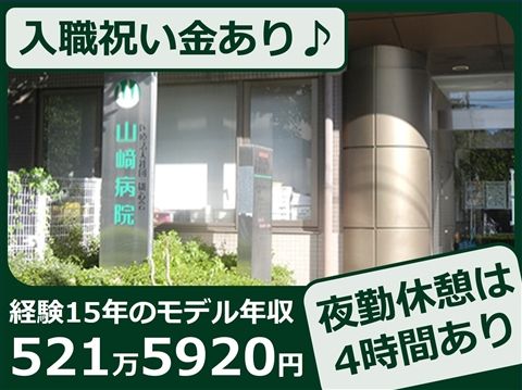 ■山﨑病院について 山﨑病院は清瀬市にある、135床の精神科病院です。 当院は、『患者さんが街で暮らすことを推進・応援する精神科医療』を目指しています。 ■病院概要 設立:1960年7月 病床数:135床 ・1病棟 慢性期病棟:47床(開放) ・2病棟 精神療養病棟:53床(閉鎖) ・3病棟 急性期病棟:35床(閉鎖) 疾患層:統合失調症9割(症状が落ち着いている方がほとんど) ■看護体制 看護基準:精神一般15対1/精神療養15対1 勤務形態:2交替制 夜勤体制:看護師1名~2名+看護助手1~2名 看護方式:固定チームナーシング 電子カルテ導入済み ■働くスタッフに訊きました! ■入職のきっかけは? ・トライアル勤務を行い、特に人間関係が良いと思ったため。 ・患者さんとのコミュニケーションをしっかりとれるような看護がしたいと考えたため。 ・自宅から近く通いやすいため。 ・勤務時間が9:00~17:00までで家庭と両立できるため。 ・経験年数が浅く、またブランクが長くても面接の機会をいただけたため。 ・前回就職していた病院よりも規模の小さな病院に移り、システムの導入や疾患教育の普及をしたいと考えたため。 ■おすすめポイントを教えてください! ・相談しやすい上司や先輩が多く、人間関係が良い! ・残業がほぼない。 ・落ち着いた患者さんがほとんど。 ・日勤パートで希望日での勤務ができ、家庭と両立できる ・医療処置は一般化に比べて少ないが、点滴や導尿、採血などを学べる点 ・プライマリーナーシングになり、自身の計画のもと看護を展開しやすく、分からないことや悩んだりしたときは周りからサポートをもらったり、カンファレンスを気軽に開けること。 ・全体で協力し合って業務を進められるため、チームワークが良い。 ・取り入れたいシステムや業務改善したい項目に対しての意見などを暖かく受け入れてもらえる。 ■印象に残っているエピソードはありますか? ・「なにか困っていることはない?」と声かけしてもらえて、わからないことを訊きやすい環境だと感じた。 ・普段あまり笑顔にならない患者さんが笑顔になったときは、嬉しい気持ちややりがいを感じた。 ・看護部長が入浴介助に入ってくれた。 ・残業することがないよう、皆さん声かけしてくれる。 ・再入院した患者さんが入院中に絵画の才能があることがわかり、その後その方面で活躍されていること。 ■採用担当者より『当院のここがおすすめ!』 ■職員の皆さんへ、おいしい食事の提供があります! 希望の方には病院から食事の提供が可能です。 給食提供業務については全国的に外部業者への委託が進む中で、当院では未だにすべて職員による調理を実施しております。 そのため質の高い食事の提供が実現できています。 ■ワークライフバランス重視の方におすすめの労働環境です! 日勤帯の実働時間は7時間!残業もほとんどありません。(2024年度看護部で1人あたり58分/月) そのため、ワークライフバランスを重視する方におすすめの環境です! ■「まずは見学から」でもOK!お気軽にお問い合わせください! <見学をご希望の場合> 【1】「この求人にエントリー」よりお気軽にご応募ください。 ※エントリーページの下部にある「ご要望・連絡事項」に「見学希望」と記載ください。 【2】ご応募いただきましたら、電話もしくはメールにてご連絡をさせていただき、見学の調整などをさせていただきます。 「いきなり面接ではなく、まずは雰囲気を見たい・話を聞いてみたい」 →見学だけもOK!ざっくばらんにお話させていただきます! ご不明点や気になることもどんどんご質問していただいて大丈夫ですよ。 求人をご覧いただきありがとうござ います。 皆様からのご応募お待ちしております! ■直接応募の方には入職祝い金として「入職奨励手当」を支給します 当院では、当ページもしくはホームページから直接のご応募をいただき、就業された方に対して、 入職奨励手当の支給を行っております。 ■入職奨励手当について ・最大15万円 ※支給要件や詳細については、面接時にお伝えします。