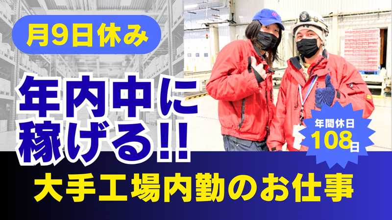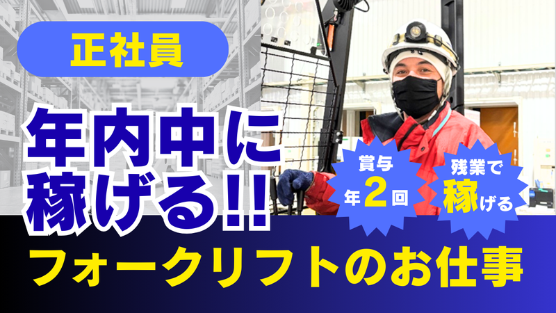 求めている人材 ◆高卒以上 ◆要フォークリフト免許 \こんな方歓迎します/ ◎短期やスポットでフォークリフト作業 をしていた方! ◎ブランクのある方 ◎フリーターさん ◎安定企業で正社員希望 \年内就職まだ間に合います!/ ・年内入社OK/年明け勤務開始OK ・応募からスピード採用 ・すぐ働きたい方、収入を安定させたい方歓迎 20代・30代・40代・50代まで幅広く活躍中。 新しい年に向けて「安定したキャリアを築きたい」という方にもおすすめです!