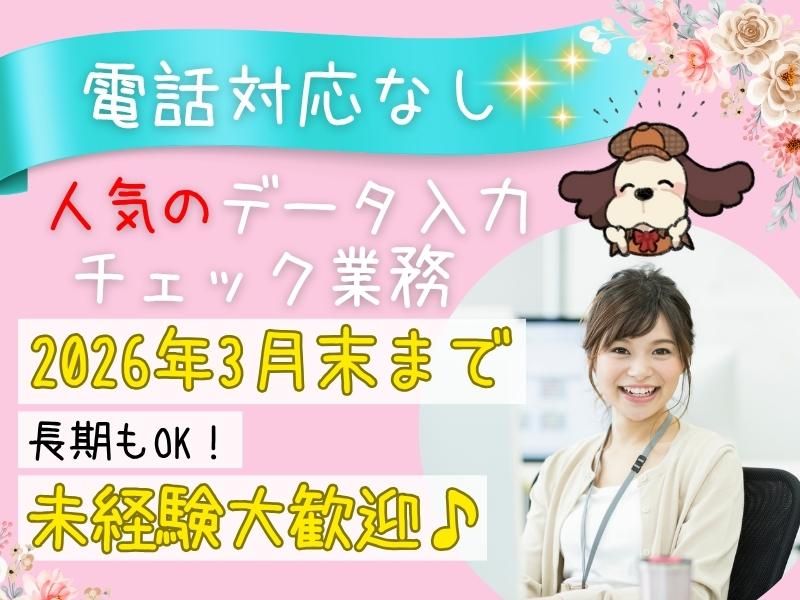 仕事内容 【アピールポイント】 ✅【期間選択OK】"2026年3月までの短期"or"長期"から期間を選択OK! ✅【電話対応一切なし】目の前の作業にトコトン集中できる! ✅【柔軟なシフト制】曜日固定休みや時間固定も相談OK! ✅【未経験でも高収入】月収26万円以上も目指せる! ✅【稼ぎ方が選べる】残業あり・なしを自分で決められる! 【仕事内容】 不動産の賃貸契約に関するデータ入力や書類チェックのお仕事! 電話対応は一切なく、自分のペースでモクモクと作業に集中できる環境です♪ 不動産知識は一切不要!人気のオフィスワークで、しっかり稼ぎませんか? <具体的には> ✨データ入力✨ 不動産の賃貸に関する各種情報を、専用システム(フォーマットあり)に入力します。 ✨書類チェック✨ 申込書類に書かれた内容(住所、物件名、番地など)に間違いがないか、元のデータと見比べて照合します。 ✨審査の補助業務✨ 決められた手順に沿って、審査に関する簡単な補助作業を行います。 ◎もし書類に不備が見つかっても、電話をかけることはありません!専門の架電担当スタッフにバトンタッチするので、入力とチェックの作業に専念できます! ※就業後、仕事内容に変更はありません ///////////////// <電話でのお問い合わせ> *0120-077-170* までお問い合わせください。 ///////////////// ✅勤務期間選択OK!"長期"or"短期"! ―――――――――――――――― 最短で2026年3月までの短期勤務もOK!「来年度から新しいチャレンジがしたい」「キリよく年度末まで働ける仕事を探している!」といった方におすすめ! また、長期での勤務希望の方も大歓迎!腰を据えて長く働きたい方にもピッタリのお仕事です! ✅電話対応一切なしで安心! ―――――――――――――――― オフィスワークで人気の「電話対応なし」の求人!「電話が鳴ると作業が中断してしまう…」というストレスとは無縁!静かな環境で、目の前のデータ入力やチェック作業にじっくりと向き合えます◎ ✅ライフスタイルに合わせて働ける! ―――――――――――――――― 週4日からのシフト制で、ライフスタイルに合わせた働き方が可能!「平日休みが欲しい」「この曜日は固定で休みたい」といった相談も大歓迎。勤務時間も固定の相談ができるので、まずはお気軽にご希望をお聞かせください♪ ✅月収23万円以上可能! ―――――――――――――――― PCのタイピングができれば、未経験でも大歓迎!それでいて、残業をすれば月収23万9800円以上も可能です◎日払い・週払い制度(規定あり)もあるので、急な出費にも対応できます!
