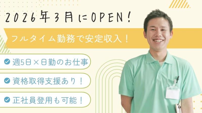 職場環境 ●子育てとの両立OK! 既存施設では、20代、30代の子育て世代が活躍中。当施設もお子さまの急な発熱などに「大丈夫!」と助け合う風土があります。家庭と仕事、どちらも大切にできる環境です◎一緒によりよい施設をつくっていきましょう♪ 喫煙所:なし(敷地内全て禁煙)