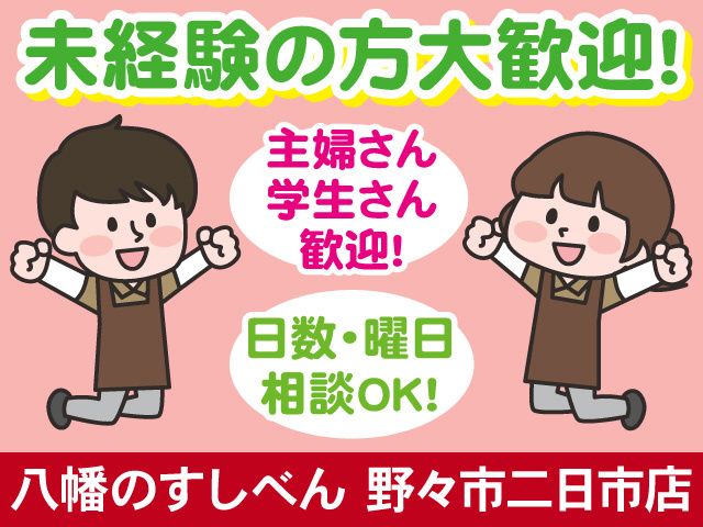 仕事内容 八幡のすしべん 野々市二日市店にて パート・アルバイトのお弁当販売スタッフを募集! ━━━ すしべんで働く魅力 ━━━ ◎初心者でも親切丁寧な指導で安心 ◎家計にやさしい食事補助制度あり ◎交通費支給(規定あり) ◎週2日~勤務OK!無理なく始められます! ◎日勤帯または夜勤帯で勤務選べます! ◎ご希望の勤務日数・曜日の相談OK ◎Wワーク・副業OK ━━━━━━━━━━━━━━━━━ 【主なお仕事内容】 〇お客様の席へのご案内 〇配膳・片付け 〇レジ業務 〇かんたんな調理補助 〇お弁当・お惣菜コーナーへの品出し陳列 などのお仕事をお願いします。 <未経験・ブランクの方も安心の環境> まずは簡単なことから始めていただきます。 難しい作業はありません。 一から研修を行います! ひと通りの業務を覚えていただくまで しっかりフォローしますのでご安心ください。 飲食店が初めての方、バイトデビューの方、 久しぶりの仕事復帰の方も大歓迎です! <幅広い年代の方が活躍しています> 20代、30代、40代、50代の方 主婦(夫)さん、学生さん(大学生・短大生・専門学生) フリーターさんなど様々な方が活躍中です。 スタッフ同士の仲が良く、 和気あいあいとした雰囲気が魅力です。 初めての方もすぐに馴染める環境なので、 安心してご応募ください! 一緒に楽しく働きませんか! ご連絡お待ちしております。