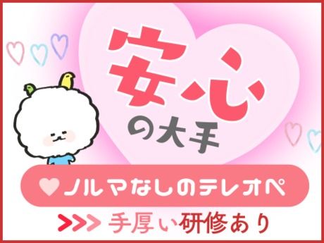 選考プロセス (1)選考方法や面接予約についてメールでご案内 URLからWEBでカンタン面接予約可能♪ (お電話でも予約できます) (2)専用ページへの入力 (3)面接実施(1回) 【WEB(オンライン)面接】【電話面接】から選択OK! 事前に詳細をメールでお送りします (4)採否判断(面接日から3営業日以内) 【問合せ先について】 問合せ先:0120-923-336 1260105940 お問い合わせの際は、上記「お仕事ナンバー」をお伝えいただくとスムーズです! 電話番号:0120-923-336(無料) 営業時間:平日のみ/9:30~19:30 応募方法 まずは、お気軽にWEB/TELより お問い合わせください。 面接時、履歴書は不要です♪ WEB応募は24時間受付中! お電話の場合、平日9:30~19:30の間にお願いいたします。