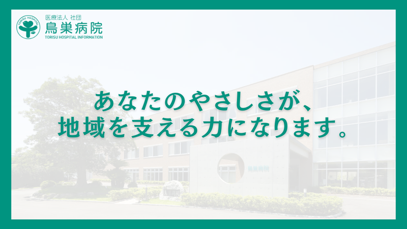 仕事内容 =========================== 鳥巣病院または鳥巣病院介護医療院での 看護業務全般をお任せします! =========================== 長期的な医療と介護のニーズを持つ 高齢者の方に対し、日々の看護を行うお仕事です! ✅具体的には.... ◎経管栄養 ◎喀痰吸引などの日常的な医学管理 ◎看取り・ターミナルケア ◎多職種との連携による入院患者様のサポート 急性期のように慌ただしく回す看護というより、 患者様一人ひとりに寄り添いながら、 じっくり関わる看護を行える環境です! ___________________ \院内保育所ありで子育て中の方も安心/ 院内保育所を完備しているため、 小さなお子さまがいる方も 安心して働ける環境です! 「子どもの預け先が心配で復職に踏み出せない…」 という方にも、無理なくお仕事を始めていただけます。 子育てと両立しながら、看護の仕事を 続けたい方を応援します! ___________________ \ブランクがあっても大丈夫!/ 入社後はしっかりとサポートしますので、 ブランクのある方はもちろん、 育児を経てお仕事復帰を考えている方、 これまでの経験を活かして長く働きたい方も 安心してご応募いただけます! まずはお気軽にご相談ください♪ ___________________ ⏩職場環境 困ったことや分からないことがあれば、 すぐに相談できる環境です! 普段から気軽にコミュニケーションが取れるため、 安心して仕事に取り組めます。 一人ひとりのペースも大切にしながら、 お互いに協力し合い、 助け合う風土が根付いています。 ___________________ ▶スタッフインタビュー Q. 職場の雰囲気は? A.スタッフ同士で協力しながら仕事を進めており、 人間関係の良さは当院の魅力のひとつです。 安心して働ける雰囲気があります。 Q.シフトの相談はしやすいですか? A.はい。お休みの希望なども スタッフ同士で相談しながら調整しています。 お互いに協力し合う風土があるため、 相談しやすい環境です! Q. 求職者の皆さんへ一言! A.入社当初は知識が浅くて当然です! 我々がサポートいたしますのでご安心ください。 ご経験がある方はもちろん大歓迎です! ___________________