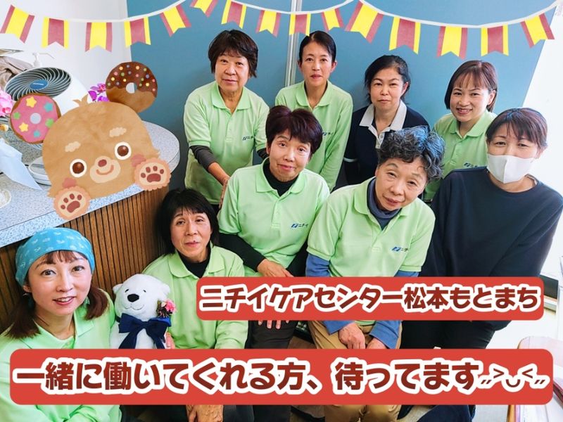 【勤務先】 ニチイケアセンター松本もとまち 【勤務地】 長野県松本市元町2丁目6番8号パピリオ元町5号 【勤務地】 長野県松本市元町2丁目6番8号パピリオ元町5号