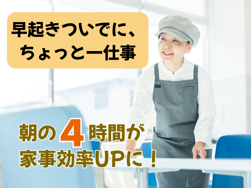 早朝の4時間勤務で月4万超の収入に♪ 家計にプラス◎家庭両立