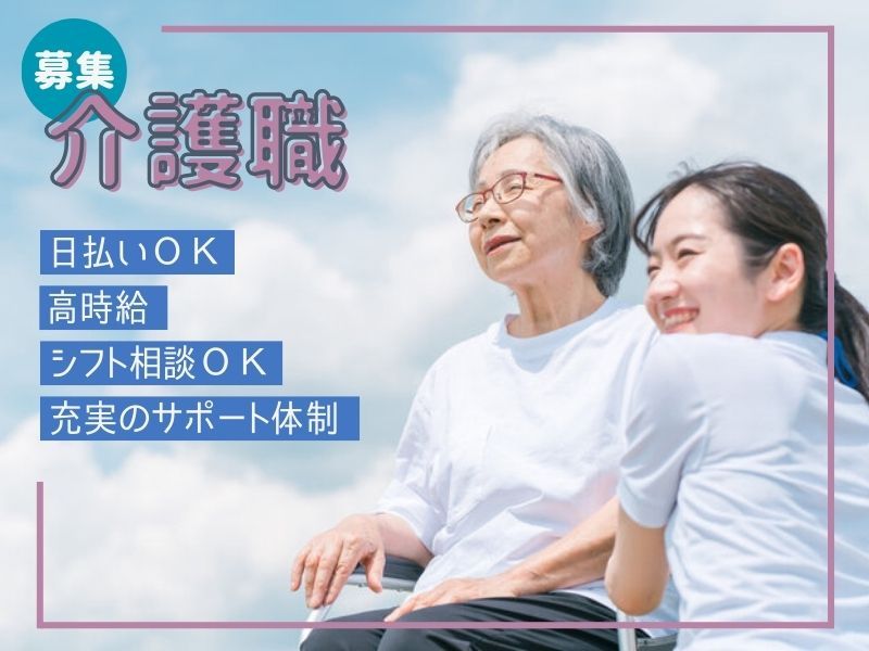 PR・職場情報 日払い・週払いの給与前払いシステムあり! チームワークと風通しの良い施設で経験の浅い方も安心 シフト相談OK 求人の特徴 ◆特別養護老人ホームでの介護業務となります◆ 初任者研修/ヘルパー以上の資格を保有している方大歓迎 ◆日払い・週払いOK◆ 最速当日中の申請・振込が可能です! お振込額は勤務実績の90%を利用できます。※規定あり ⌒*⌒*⌒*⌒*⌒*⌒*⌒*⌒*⌒*⌒*⌒*⌒*⌒*⌒*⌒*⌒*⌒*⌒*⌒*⌒*⌒*⌒*⌒*⌒ 希望と少し違う?と思ったら、まずはお気軽にご連絡下さい 専属専任のコーディネーターが希望条件のお仕事をご紹介いたします! *?*?*?*?*?*?*?*?*?*?*?*?*?*?*?*?*?*?*?*?*?*?*?*?* 求人ポイント 社員登用あり,昇給あり,高収入・高月給,交通費支給,即日勤務OK,週4日からOK,週5~6日からOK,長期,フリーター歓迎,バイク通勤OK,給料前払いOK,短期,学歴不問,車通勤OK,転勤なし,経験者歓迎,週払いOK,有資格者歓迎,月1シフト提出,研修あり,社会保険完備,50代以上応募可,シフト制,即日払いOK,40代以上応募可,履歴書不要,週5からOK