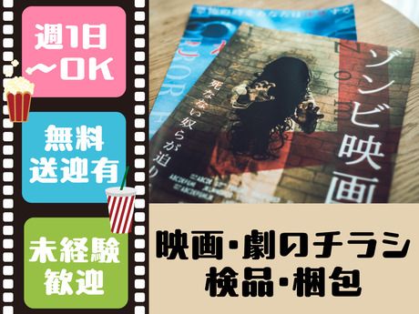 仕事内容 映画・劇などチラシの検品・梱包 \★初めてでも安心のカンタン軽作業★/ チラシの検品・梱包の お仕事をお任せします♪ 映画や劇のチラシを扱うので 気になる作品に出会えるかも◎ 【具体的には…】 ・チラシの枚数のチェック ・チラシを箱に詰めて梱包する など 初めての方でも半日あれば覚えられます! それでもわからないことは先輩staffが 丁寧にサポートするので安心して下さいね♪ ★☆ スポット・ド短期・単発OK ☆★ ●働き方は自由自在! ●スキマ時間や空いている日を有効活用できる! ●平日だけ、土日だけもOK! ●1日~OKのスポットワーク! ━━━━━━━ ★こんな方に★ ━━━━━━━ ■長期休暇に自由にお金を使いたい! ■週末の飲み会に向けてお金が欲しい ■会話少なめで簡単な仕事が欲しい など ★☆嬉しいメリットを教えてください!☆★ 【1】日払いOK 「急な出費のときに本当に助かる…」 「欲しいものがすぐに買えます♪」 「遊ぶ予定の前にサクッと稼いでます!」 【2】短期OK 「長期休みのときだけ働いてます!」 「次の仕事が決まるまでの"繋ぎ"で」 「季節限定のオシゴトだけ♪」 【3】シフト自由 「週1、2日で無理なく働けてます◎」 「学校がない土日メインのシフトです!」 「夜勤も選べるのでWワークで働いてます」 ★☆ スタッフの声 ☆★ ▼40代staff 「家庭と両立して働けています。 子育てが落ち着いたらもう少し シフトを増やしてみようかな!」 ▼20代staff 「アルバイトをしていたけど 急にシフトに入れなくなって 困っていたときに応募しました!」 みなさん、学校・家庭・他のお仕事など と上手に両立しながら働いていますよ♪
