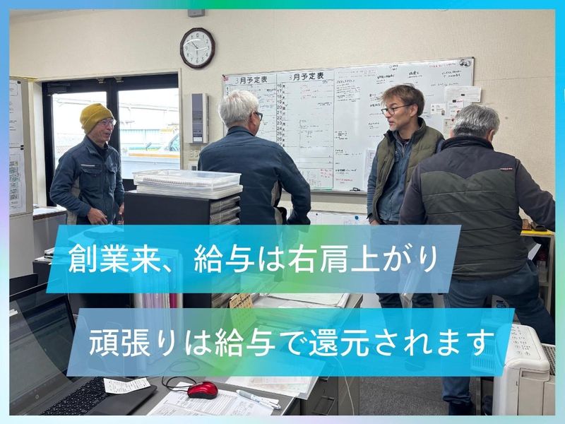 職場環境 30代~60代まで多数活躍中!社長も現役で現場に入るので、自然とあなたの成長している姿が届き、給与や賞与に反映されます。 喫煙所:喫煙所あり(屋外)