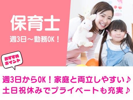 <★保育士資格者歓迎!>週3日勤務~OK!土日祝休みでプライベートも充実♪