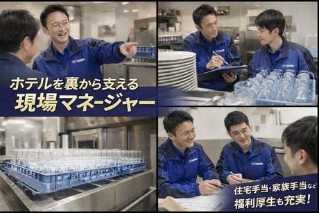 仕事内容 ~縁の下の力持ちとして、チームを導く仕事です~ ホテルスチュワードは、ホテルやレストランの裏方で、 衛生管理やキッチン運営を支える重要な役割です。 今回募集するのは、スチュワードチームのリーダーとして 現場をまとめ、品質と効率を高めるマネジメントポジション。 一見目立たない職種ですが、ホテル全体の運営を支える “縁の下の力持ち”として、非常にやりがいのある仕事です。 現場の仲間を支えながら、組織全体の成長に関われます。 ◆全国のホテルで働くチャンスがあります! 関東から沖縄まで、全国にある事業所での勤務が可能です。 「いろんな場所で働いてみたい」 「新しい土地で暮らしてみたい」 そんな気持ちを歓迎します。 社内の異動による引っ越しの場合は、 引っ越し費用を会社が負担します。 「沖縄で働いてみたい!」といったご希望も、 ぜひお気軽にご相談ください! ◆今回の募集は全国転勤ありですが、 「地元でリーダー職に就きたい」という方は 地域限定社員も募集していますので、 面接時にお気軽にお声がけください! <お仕事内容> 施設のバックヤード業務を統括し、 人・物・時間を管理しながら、施設運営を支えるポジションです。 現場作業に加え、チーム運営や業務改善にも携わっていただきます。 【主な業務内容】 *洗い場・バックヤード全体の業務整理、現場管理 *スタッフの配置・シフト管理、作業指示 *食器・備品の品質チェック、在庫管理・棚卸し *施設責任者や料理長、各部署との打ち合わせ・調整 *メニューや予約状況に応じた準備・セッティング *業務フローの見直し、効率化・改善提案 日々の業務を通して、 「どんな料理・サービスに、どんな備品や動線が最適か」など、 運営視点・マネジメント視点を身につけることができます。 まずは現場理解からスタートし、 少しずつ管理業務の幅を広げていきましょう。 コツコツと積み重ねる力が、施設運営の質を高める仕事です。 <応募後は書類の送付をお願いしております> 当社では、いただいた書類を丁寧に 確認させていただいております。 しっかりと記載いただければ 通過する可能性が高まることもございます。 これまでの飲食業でのご経験や マネジメントスキル、そして お仕事への想いを拝見できるのを、 心より楽しみにしております。 <年末年始のご応募・お問い合わせについて> 12月26日18:00~1月5日10:00までは、お電話での受付を停止いたします。 期間中にいただいたご応募・お問い合わせにつきましては、1月5日以降の対応となる場合がございます。 あらかじめご了承ください。 先輩がゼロから丁寧にサポートするので、 初めてでも安心してスタートできます。 レストランを裏からサポートするこの仕事は ホテル内の他部署の方と連携しながら 業務を行っていきます。 コツコツとした業務が好きな方も、 自分の殻を破って新しい自分に 挑戦できる環境です。 今はまだ自信がなくても、 一歩ずつ着実に進んでいくことで、 ゆくゆくはチームを導く事業所責任者を 目指していきましょう。 社宅完備<自己負担は月3万円&水道光熱費のみ> 遠方からの移住を 考えている方には社宅も完備! 安心して新しい生活を始められます。 新たなキャリアに挑戦する絶好の機会です。 <先輩からの声> 「同業界からの転職でしたが、 東証スタンダード上場グループという安定した環境で、 チームをまとめながら現場を動かすやりがいを感じています。 これまでの経験を活かし、 長くキャリアを築ける安心感があります。」 (入社3年目・30代) <勤務地について> 名古屋の副都心である金山。 観光だけでなくビジネスにも便利な駅前の立地です。 雨の日なども通勤ラクラク!
