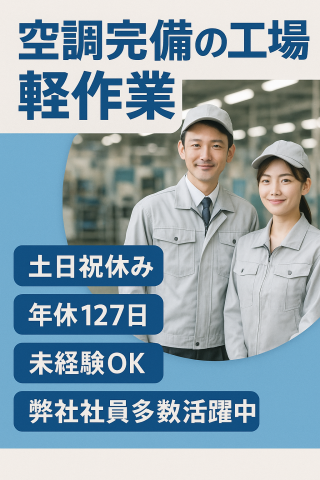【交替勤務なしで日勤のみ・土日祝休み・未経験OK】空調完備な工場内作業
