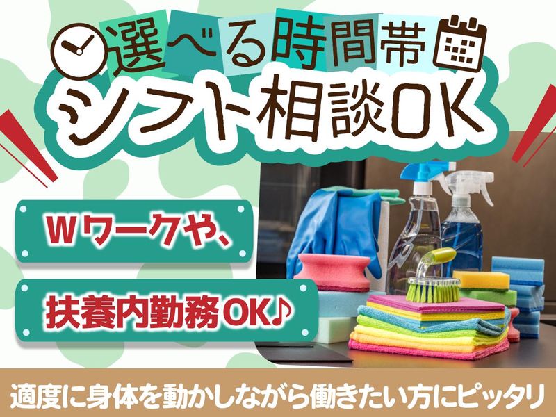 仕事内容 【医療保健施設「サニーピア」での清掃】 ◆メリケンパークに隣接する「サニーピア医療保健協会」の施設内の清掃をおまかせ致します。 ◆クリニック内の通路やトイレの清掃(※女性専用エリア清掃もあり)、ゴミ回収など。 ◆初めての方大歓迎!一つひとつ丁寧にお教えします、覚えやすい内容からスタートしていきましょう♪ 【「朝から」「夕方から」ご希望の時間帯が選べます♪】 ◆「午前中~昼過ぎまで」や「夕方~18時、19時まで」など生活サイクルに合わせた時間帯を選んで頂けます♪ ◆実働2~3hから気軽に働いたり、もう少し集中して5h勤務!など、ご希望に合った時間帯について、ぜひご相談ください! ◆「朝から」「夕方から」など日の空き時間をうまく使える勤務時間なので、Wワークにもとっても便利です♪