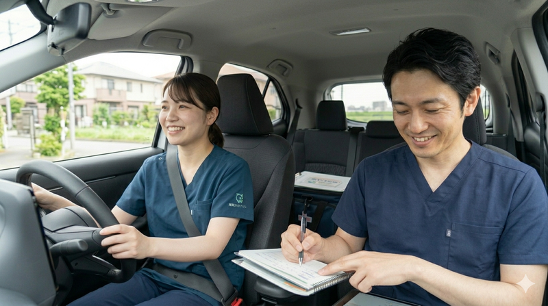 仕事内容 【社会復帰を応援!先生の隣で地域医療を支えるお仕事】 葛西ホームケアクリニックは、通院が困難な患者様のご自宅へ伺う「訪問診療」を行っています。 あなたにお任せするのは、先生の診療がスムーズに進むようサポートする「事務」と「同行」業務です。 ー・-・-・-・-・-・-・-・-・- 【こんな「お悩み」ありませんか?】 「子育てが落ち着いたから働きたいけど、ブランクが不安…」 「医療の知識はないけれど、誰かの役に立つ実感がほしい」 「夕飯の支度には間に合わせたい。でも、やりがいは諦めたくない」 ⇒ 当院なら、その想いすべてに応えられます! ー・-・-・-・-・-・-・-・-・- ━◆ 具体的なお仕事内容 ◆━ ━【1】訪問診療の同行・サポート(外回り) 先生と一緒に、1日10件前後、患者様のご自宅を訪問します。 ・診療補助 ┗ 先生がお話しした内容や処方薬のメモを取るほか、採血やレントゲン撮影の準備、各種書類のやり取りなど、診察がスムーズに進むためのサポートをお願いします。 先生の「大切な右腕」として、現場を支えるやりがいのある業務です。 ・運転業務 ┗ 往診車(シエンタ)での移動です。 基本は葛西エリア中心ですが、江東区や千葉方面へ足を延ばすこともあります。「知らない道は不安…」という方もご安心ください! シエンタは小回りが利くので、普段お買い物などで運転されている方ならすぐに慣れていただけます。 最初は先生がナビ代わりに道案内をしたり、駐車のサポートをしたりと、あなたが運転に自信が持てるまでしっかり横で支えます。二人三脚で進めていきましょう! ・患者様への声がけ ┗ 「最近調子はどうですか?」といった、何気ない会話が患者様の不安を和らげます。あなたの笑顔が一番のケアになります。 ◎ 安心ポイント:医療行為は一切ありません! ┗ 採血や点滴の「処置」など、医療資格が必要な作業をお願いすることは絶対にありません。 あなたにお願いするのは、「採血の時にアルコール綿を先生に渡す」「使い終わった針を専用の容器に捨てる」といった、先生の横でのちょっとしたお手伝いです。 これらは医療行為には当たらないため、無資格・未経験からでも安心してスタートできます。あなたの役割は、先生が診察に集中できるよう環境を整える「最高のサポーター」です! ━【2】クリニック内での事務・サポート(内勤) 「医療事務って難しそう…」と思うかもしれませんが、まずは簡単な入力や整理からスタートします。 ・電子カルテ、PC作業 ┗ 診察内容のシステム入力のほか、電子カルテを使った書類のスキャン、印刷、予定表の作成などをお願いします。 決まったフォーマットへの入力や操作がメインなので、ネット検索やメールができる程度のPCスキルがあればスムーズに慣れていただけます。 ・お電話・業者さん対応 ┗ ケアマネジャーさんや薬局、医療材料の業者さんからの連絡が主です。丁寧で明るい対応が、クリニックの信頼に繋がります。 ・準備・環境づくり ┗ 診療で使うガーゼや手袋などの在庫チェック、補充、院内の清掃など。主婦(夫)の「目配り・気配り」が活きる業務です。 ・保険請求(レセプト)の補助 ┗ 入社後すぐにお任せすることはありません! 現場の仕事にしっかり慣れて、「もっと専門的なスキルを身につけたい」と思った時に、少しずつお教えしていきます。 専用ソフトを使って進める作業で、一度覚えれば一生モノの知識になります。 ー・-・-・-・-・-・-・-・-・- 【スタッフの「働きやすさ」を本気で考えています】 「医療の現場は残業が多そう…」と不安に思うかもしれません。 当院では現在、スタッフの負担を減らすため、業務フローの効率化を積極的に進めています。 「早く帰って家族と食卓を囲んでほしい」という想いから、無駄な残業を減らす取り組みを全員で行っています。 ー・-・-・-・-・-・-・-・-・- ━◆ 1日の流れ(例) ◆━ 10:00からのゆっくり出勤なので、朝の家事を済ませてから余裕を持ってスタートできます。 10:00 出勤・準備 先生と一緒に、今日訪問する患者様のカルテ確認、医療機材の積み込みをします。 10:30 午前の訪問診療(3~4件) 先生の指示をメモしたり、ご家族と体調についてお話ししたりします。 12:30 お昼休憩(基本1時間) 車内での休憩となります。 訪問ルートや診療状況により、時間が前後したり、一気に1時間取ることが難しい日もあります。 その分、移動中の車内でこまめに一息ついたり、帰院後に調整したりと、「無理なくリフレッシュできるよう」先生やスタッフ同士で声を掛け合っています! 13:30 午後の訪問診療(6~7件) 午後の巡回へ。移動中の車内では、先生と情報共有をします。 17:30~18:00 帰院・事務作業 訪問先でのメモをカルテに入力、処方箋の手配などをします。 18:00〜19:00 退勤 基本的には19:00頃には業務を終えて帰宅しています。 ※ 急な往診などで少し遅くなる場合を含めても、残業時間は月平均10時間前後(10時間未満のスタッフも多い