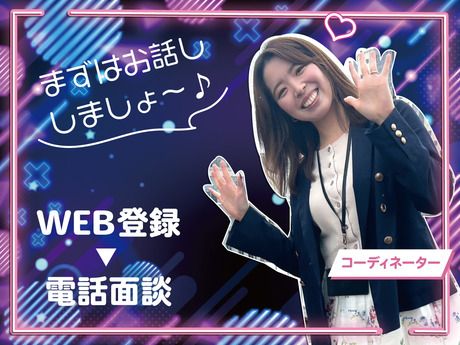 選考プロセス 【応募後の流れ】 \来社不要で手続きが可能/ (1)マイページ開設 (2)職務経歴等の情報登録 (3)専任コンサルタントより条件確認や仕事紹介 (4)選考・仕事決定 ご登録後は専任のコンサルタントがつき、 適正診断などのキャリアカウンセリング、 条件の合う求人のご紹介~ご就業をサポートいたします。 【問合せ先について】 問合せ先:0120-705-848
