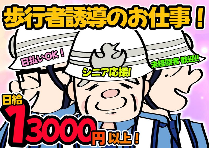 仕事内容 ★====アピールポイント====★ ◆1日 日収 13,000 円 以上! ◆まったくの未経験でも大歓迎! 【電話応募随時受付中】 086-246-8812 ★================★ 岡山市中区門門田屋敷交差点での 交通誘導警備をお願いします。 具体的には、 ◆歩行者や自転車安全誘導 ◆交通規制の案内 ◆通行者への注意喚起 など 【未経験者入社大歓迎!】 超簡単なお仕事からスタート! しっかり研修もあるので、 未経験の方でもご安心ください◎ (20時間以上(3日間)の法定研修あり★) その後は、慣れるまで先輩スタッフと 同行しながら少しずつ仕事を 覚えていただきます♪ 【 自分の都合に合わせて働ける! 】 魅力はなんと言ってもシフトの 自由さ!完全フリー◎ あなたのライフスタイルに合わせて 働くことが可能です★ 「今週は忙しいから働けそうにない...」 もOK!!