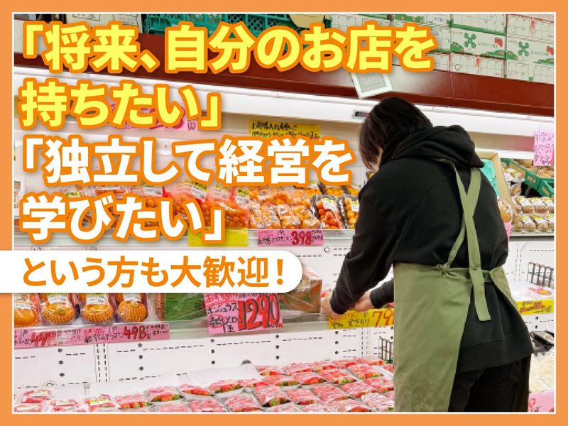 求めている人材 未経験者大歓迎! 「青果業務に興味がある」 「安定した職場で成長したい」 と考えている方を歓迎します! どなたでも挑戦できる環境が整っていますので、 初めての方も安心してご応募ください。 もちろん、 スーパーや百貨店などの青果部門で働いた経験がある方も大歓迎! 将来独立を考えている方も応援します!