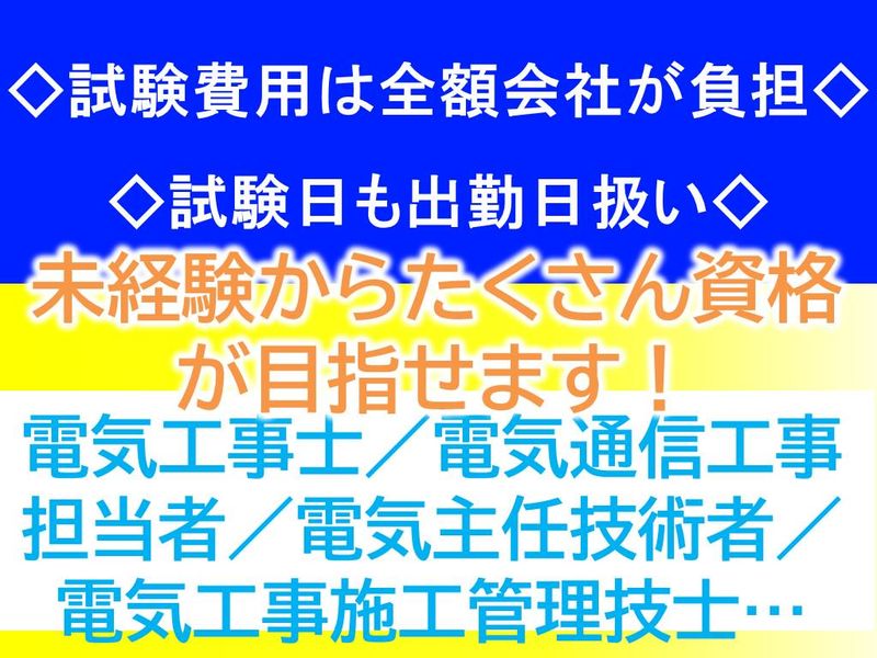 求めている人材 ●業界・職種未経験の方歓迎します!※高卒以上の方 └0から一生使えるスキルを身につけたい方、お待ちしています! ●第二新卒歓迎 「人柄・意欲」重視のポテンシャル採用 ※20代~30代の異業種から転職し活躍しているスタッフ在籍 <下記に該当する方は優遇します!> ●2種電気工事士以上の資格保有者(実務経験が無くてもOK!) ●普通自動車免許以上の資格保有者 <求めている人物像> ●成長意欲が高く前向きに業務に取り組める方 ●社内外問わずコミュニケーションを取ることが苦手ではない方 ●協調性をお持ちの方 これまでの経験や意欲に応じた仕事をお任せします。 まずは気軽にご応募ください◎
