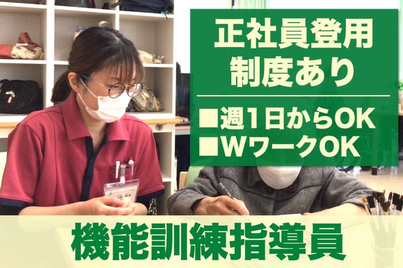 【アピールポイント】 最大34名定員のデイサービス機能訓練指導員募集! ✅週1日からOK! ✅介護施設未経験の方OK! ✅ブランクある方OK! ✅副業・WワークOK!