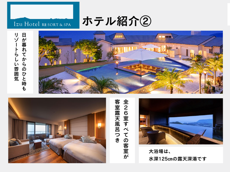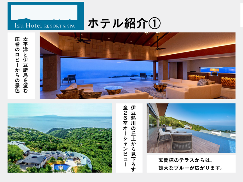 アピールポイント: / ⭐お客様からの声 \ ・景色と食事を楽しむために、 毎年伺います。 ・食事もサービスも素晴らしい ・フレンチが美味しく、 ワインはペアリングできました♪ ・太平洋を見ながらのフレンチ、 最高すぎました(:;) / ⭐社員食堂あり \ 1食200円、 昼食は無料提供になります。 / ⭐単身用の社員寮完備 \ 水道、光熱費込みの 社員寮も完備。 (給与の5%が寮費になります) バストイレ別、テレビ、冷蔵庫、 布団、IHコンロ付きです。 車がない方には、 ホテル隣接の寮をご用意します。 /////////////////////////////// 伊豆ホテルリゾート&スパ 〒 411-0302 静岡県賀茂郡東伊豆町奈良本1457-30 ■伊豆急行線「伊豆熱川駅」から車15分 ■路線バス「吉奈温泉口」から徒歩15分 ・マイカー通勤OK ・バイク通勤OK ・無料駐車場あり ///////////////////////////////