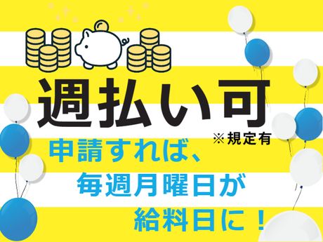 【保険制度】 雇用保険、労災保険、健康保険、厚生年金 待遇・福利厚生 【福利厚生】 ・社会保険完備 ・交通費全額支給(規定) ・週払い制度あり(規定) ・無料駐車場完備 ・制服あり ・マイカー通勤OK