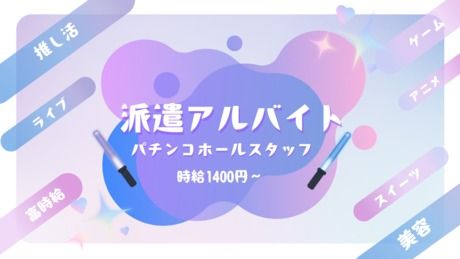 資格 接客が好き、または興味がある方 人と話すのが好きな方や、明るい対応ができる方 未経験でも「やってみたい!」という気持ちがあればOK パチンコの知識がなくてもまったく問題ありません◎ Wワークや家事・学業との両立をしたい方にもピッタリ 長期で安定して働きたい方、大歓迎です 初めての派遣勤務という方も丁寧にフォローしますので安心してくださいね♪