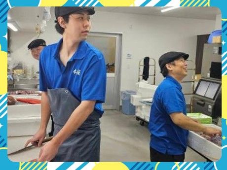 待遇・福利厚生 【福利厚生】 ・昇給有 ・交通費規定支給 ・車、バイク通勤OK ・スタッフ割引(自社の鮮魚を安価で購入可) ・制服完備(無料) ・社員登用有 ・髪型・髪色自由 *社会保険は法定に則り適用