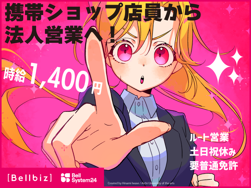 仕事内容 携帯ショップ経験を活かして法人営業へ。 飛び込み営業ゼロ!大手キャリアのルート営業スタッフ募集! 【お仕事内容】 スマートフォンやビジネス向けサービス、パソコン・周辺機器など、法人のお客様に向けたご提案をお任せします。 具体的には… ・取引先企業への訪問(社用車使用) ・お客様のビジネス課題に合わせた商品提案 ・提案書や見積書の作成・契約後の開通作業サポート など チーム制を導入していて、わからないことは何でも聞きやすい雰囲気! 『営業は初めてで不安…』という方もご安心ください。メンバー同士で協力し合いながら、業務を進められる環境です◎ 【ここがポイント!】 ◎携帯ショップで培った知識を活かして営業デビュー! ◎土日祝休み&残業少なめでプライベートも充実! ◎スタッフ同士のコミュニケーションが活発で、風通しの良い職場です! 「携帯ショップでの接客経験を活かして、もっと幅広い仕事にチャレンジしたい」そんなあなたの新しい一歩を、私たちが全力でサポートします!まずはお気軽にご応募ください。 ワクワクできる、だから前にすすめる。 コールセンターのお仕事探しならベルシステム24にお任せ! Bellbiz名古屋(仕事№/004-64847)