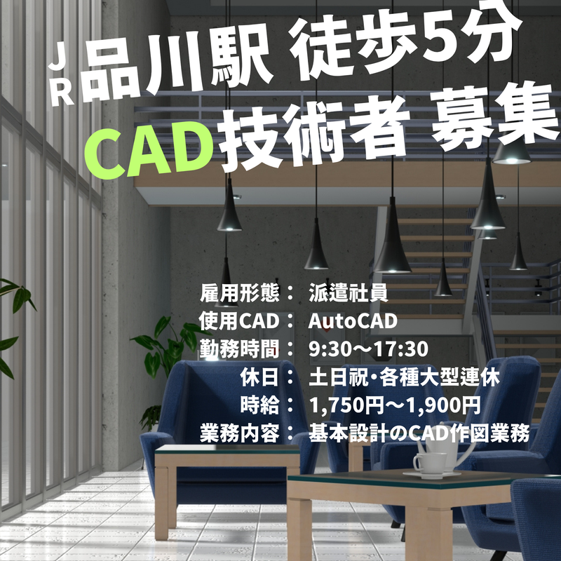 求めている人材 ・建築系学科卒業レベルの建築知識がある方 (訓練校卒業も可) ・AutoCADの使用経験 ・経験が浅い方も歓迎 <こんな方も歓迎> ・建築意匠図の作図実務経験ある方 (オペレーターのみ、木造、 軽量鉄骨も相談可) <活かせる経験・スキル> Word/Excel/PowerPoint/Access CAD関連/BIM(Revit) 無資格歓迎(資格不問) 学歴不問 フリーター歓迎 ブランク歓迎 <活躍中のスタッフ> 男性活躍中・女性活躍中 20代・30代・40代・50代・60代活躍中 ミドル・中高年活躍中
