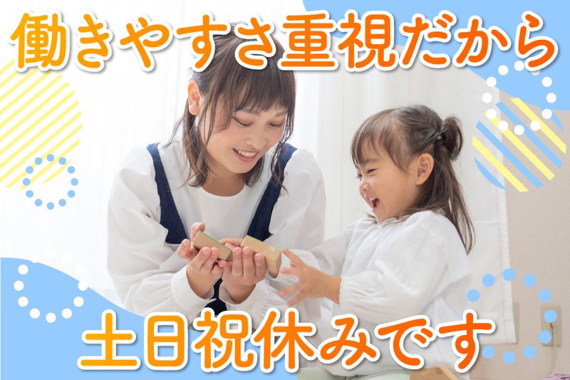 【応募資格】 【お人柄重視の採用です!】 経験や技術も必要ですが、一緒に働く仲間を大切にし、子どもたちや保護者様に対して誠実で一生懸命に対応できるかどうかを大事にしています。 私たちの価値観に共感し、子どもたちのために全力で関わっていける方を広く募集しております。 【必須条件】 ・保育士資格 ■優遇条件 ・児童指導員 教員免許 ・社会福祉士 精神保健福祉士 ・幼稚園教諭 ・公認心理士 大学で以下の専攻をされた方 ・社会学 社会福祉学 心理学 教育学 【こんな方をお待ちしています】 ・体を動かすのが好きな方 ・人に喜ばれる仕事をしたい方 ・何より人間関係の良い会社で働きたい方 【メリット】 #有資格者歓迎 #ブランクOK #学歴不問 #交通費支給 #車通勤OK #服装自由 #残業なし #週2・3日からOK #扶養内勤務OK #主婦・主夫歓迎 #60代も応募可 #フリーター歓迎 #平日のみOK #経験者歓迎 #研修あり #50代も応募可 #長期休暇あり #40代も応募可 #勤務開始時期調整