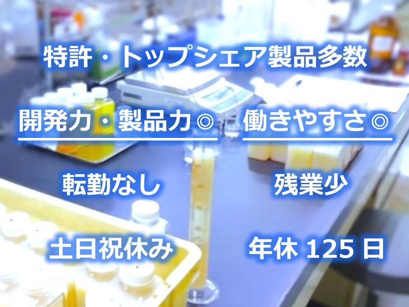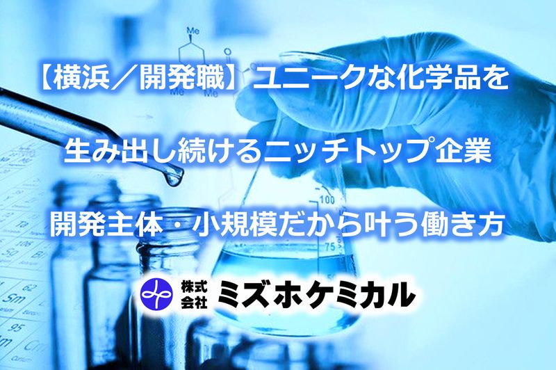 仕事内容 ―――――――――――――――――――――― ★☆業界随一の技術力でヒット連発70年!!☆★ ―――――――――――――――――――――― ◦『ユニークな化学品』を開発・製造70年。ロングヒット製品・トップシェア製品多数。 ◦ 特許・商標多数。《日本初》製品・《世界初》製品など。業績安定・事業好調。 ◦「クリーニング・アパレル向け洗剤類」「液体飼料」のトップシェアメーカー。 ◦『液体飼料=家畜用ドリンク剤』の成長でコロナ期間も事業拡大◎ ◦ 新たに《日本初》製品を開発中!! ――――――――――――――――――――――― ★☆自分のアイディアが『モノ作り』に直結!☆★ ――――――――――――――――――――――― ◦『自社開発・自社製造』➡ 自分の開発アイディアが製品にダイレクト反映。 ◦ 大手企業では叶わない『モノ作りの手応え』を実感できます。 ~異業種からの転向大歓迎☆!~ ~20代・30代活躍中☆!~ 【具体的な仕事内容】 『液体飼料』や『機能性洗剤類』などの製品開発を一貫してお任せ。 (化粧品・食品・飲料の開発に近いです) ●新製品開発 ●原料・製法・設備の選定 ●作業手順書・データシートの作成 ・「どんな原料や製法が良いだろう?」と試作を繰り返して製品開発。 ・ 最適な原料や製造方法から製品化。量産設備の選定も。 ・ 作業手順書やデータシートも作成します。 【業界未経験でも安心】 開発補助や工場の現場実習からスタートし、段階的にスキルアップ。 数ヶ月で一任されるようになった先輩社員も。異業種からの転向ばかりです。 (※英語力不問。海外出張ナシ。外出ナシ) - 【働きやすさバツグン!】業績好調◎ 開発力・商品力◎ 転勤ナシ・飲み会ナシ★☆ - ▼▼☞POINT▼▼ ①年間休日125日 土日祝休み 週休2日制 ◦休日たっぷり。自分の時間も大切に♪ ワークライフバランス◎ ②業績好調・事業拡大中 ◦トップシェア + 新製品(液体飼料) → 毎年売上UP⇧。 ◦業績安定70年。液体飼料事業が成長。売上拡大中◎ ③企業風土◎ 小規模12名 ◦風通しが良い職場です。若手社員からの提案も積極採用しています。 ④転勤ナシ 夜勤ナシ 残業極少 飲み会ナシ 英語力不問 海外出張ナシ 外出ナシ ◦転勤はありません。勤務地1ヶ所のみ。夜勤・深夜残業は一切ありません。 ◦残業 月平均~15h。早めに上がる人ばかり。飲み会もありません。忘年会・新年会ナシ。 ◦英語力不問です。海外出張は一切ありません。国内出張や外出も基本的にほぼありません。 ―――――――――――――――――――――――――――――――――――――――――――― 【株式会社ミズホケミカル】 ・『ユニークな化学品』を生み出し続けるモノ作り企業。 ・「クリーニング・アパレル向け洗剤類」「家畜用ドリンク剤」の分野でトップシェア。 ・ 特許・商標多数。ロングヒット製品・トップシェア製品多数。 ・ 創業70年の堅実経営で将来も安心。コロナ期間も売上拡大!業績が好調です◎ ・ 業界随一の技術力を活かして常に新製品開発。新たに《日本初》製品を開発中! *経産省「元気のあるモノ作り中小企業300社」選定 *横浜市「横浜知財みらい企業」5年連続認定~永年認定 ――――――――――――――――――――――――――――――――――――――――――――