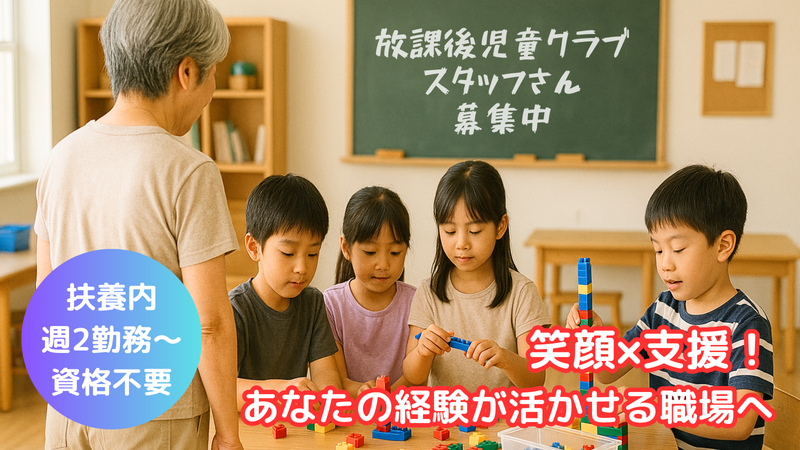求めている人材 ★ 特別な資格・経験は一切不要!★ 「久しぶりの仕事で不安…」という方も、役割分担がしっかりしているので安心! \ こんな方にピッタリ! / ・子育てが落ち着いて、そろそろ仕事を始めたい方 ・ 未経験でも、できることから少しずつ覚えたい方 ・ 子どもが好きで、関わる仕事がしたい方 ・ 体力的に負担の少ない仕事を探している方 ・ 家庭と両立しながら、扶養内で働きたい方 ・ 人と話すのが好きで、温かい職場で働きたい方 20代~70代まで幅広いメンバーが多数活躍中! 「ブランクが長いけど大丈夫?」「子どもと触れ合う仕事は初めて…」そんな方も、未経験から安心して始められます! *こんな経験が活かせます!* 「特別なスキルがない…」と思っていませんか? 実は、あなたが今までの生活の中で培った経験が そのまま活かせる んです! ◆育児・子育ての経験(ママ・おばあちゃん大歓迎!) ◆スーパー・飲食店・アパレル・接客業の経験(人と接するのが好きな方にピッタリ!) ◆保育・教育・福祉関係の経験(もちろん大歓迎!) 「こんな私でもできるかな?」 そんな気持ちがあれば大丈夫! まずはお気軽にご応募ください!