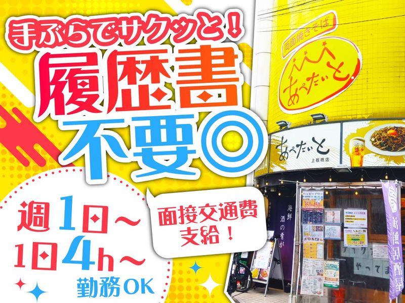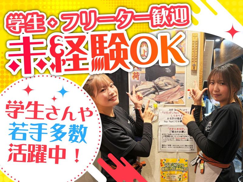 仕事内容 ✅週末シフト固定手当で時給1400円~も! ✅金曜夜+土日祝でガッツリ働ける方歓迎 ✅絶品まかないが無料!!食費節約にも♪ ✅勤務実績でインセンティブもあり✨ リニューアルOPENした海鮮居酒屋! 「上板橋駅」から徒歩3分の駅チカで 通勤しやすい好立地♪ 焼きそば、海鮮丼、オムライス、 豚丼、スタミナ丼など色んな料理を 無料まかないとして提供◎ インセンティブや各種手当で稼ぎながら、 美味しいまかないで食費も節約できる! 貯金したいフリーターさんや 趣味にお金を使いたい学生さんには嬉しい、 楽しく美味しく、稼げる居酒屋です♪ - 【具体的には】 《ホール》 ■接客・オーダー対応 ■レジ対応 ■料理の配膳・テーブル片付け など 《キッチン》 ■サイドメニュー調理 ■簡単な調理補助・洗い物 など ホール勤務をメインに、 簡単なキッチン業務もお任せ。 シンプルな業務から教えていくので、 少しずつ慣れていきましょう。 学生を中心に若手のスタッフが 多く活躍しているので、 フランクな雰囲気で質問もしやすいです! - \インセンティブで+αの収入も!/ <インセン実績> ▷年末年始3日間(Aさん) 昼夜勤務:22,000円支給 ▷1月3日ディナータイム勤務(Bさん) 5,200円支給 \1日4時間~OK!休日は時給UP★/ 忙しい時間帯や時期に働ける方には インセンティブや手当でボーナス支給✨ 各種手当込みで、最高時給1400円~! 週1日~勤務OKなので、学業や 趣味と両立したい方も応相談◎ テスト期間の長期休暇の取得もOKです。 \清潔感があればオシャレは自由!/ 金髪・ピンク・水色など髪色は自由! 清潔感のある格好であれば、 ネイルやアクセサリーもOK。 働きながらオシャレも楽しめる居酒屋です。 Tシャツ・エプロンは支給するので、 ズボンはお手持ちのものでOK! 気軽にスタートできちゃいます♪