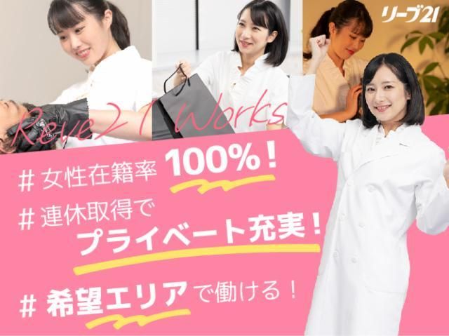 仕事情報 ● 仕事内容 手厚い研修で安心のサポート体制有。女性管理職が多く評価体制が整っています。発毛のための施術を行うことが主な業務です。お客様の症状に合わせた発毛プログラムに沿って、シャンプーをしたり、特許取得の器具等を使い発毛施術を提供していきます。お客様の人生を変えるというリーブ21ならではの醍醐味を実感できます。 リーブ21とは 発毛のリーディングカンパニーとして、独自に開発した発毛・育 毛の理論と、専用システムをもとに髪に悩まれているお客様にご 自身の髪を取り戻していただき、悩みの根本的な解決をお手伝い しています。「世界中の脱毛に悩む人々を自信と喜びの人生に変 える」を経営理念とし、21世紀を担う企業を目指しています。 女性が活躍できる会社 当社には女性管理職が多数活躍しています。当社の店舗スタッフ は現在100%女性ですので、気持ちを共感し合える先輩や同僚が たくさんいます。女性の育休取得率100%で、復職後の時短勤務も 法定以上に可能な制度があります。厚生労働省えるぼし認定を取 得し、中長期的に働ける環境を整えています。 やりがいを感じ成長できる 私たちの仕事は商品を売ることではありません。お客様の気持ち に寄り添い、二人三脚で発毛に取り組んでいく中で、わたしたち は沢山のことを学び人間として大きく成長することができます。 お客様の深い悩みが、大きな喜びや幸せに満ちた人生に変わるお 手伝いができる、大きなやりがいを感じる仕事です。 こんな人が活躍中! ◎人と関わることが好き◎人の悩み相談に真剣にのってあげられ る◎人の役に立ちたい◎頑張りを評価されたい、キャリアアップ していきたい◎チームで協力して働きたい◎笑顔に自信あり! 一つでも当てはまる方は是非ご応募ください。