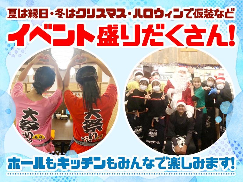 求めている人材 ◆未経験歓迎 ◆扶養内勤務歓迎 ◆主婦・主夫歓迎! *店長も現役ママです! ◆レギュラーで働けるフリーターさんや 社会人・Wワークも大歓迎! ◆中高年活躍中 ◆ブランクOK ◆経験不問 丁寧に指導・フォローしていきますので、 未経験の方もご安心を! シフト融通もバッチリなので、 大学生さん・社会人・Wワーク・ 主婦(夫)さん・フリーターさんなど幅広い層が活躍中です! カフェやレストランでの勤務後、夜は鳥まるでかけもちも◎ コンビニなどスタッフの前職も様々です♪ ✨鳥まるはこんなお店✨ 「じゃんけんで一品サービス」 「ハロウィンイベント」 「夏にはお座敷で縁日イベント」 などイベント盛りだくさん! 常連さんが多く近隣のお客様に大人気のお店! ハロウィンの仮装は社長が買ってくれるので キッチンも仮装します!(強制じゃないよ) お客様もお子様から大人まで仮装で参加◎ 楽しくバイトしたい方にピッタリのお店です。