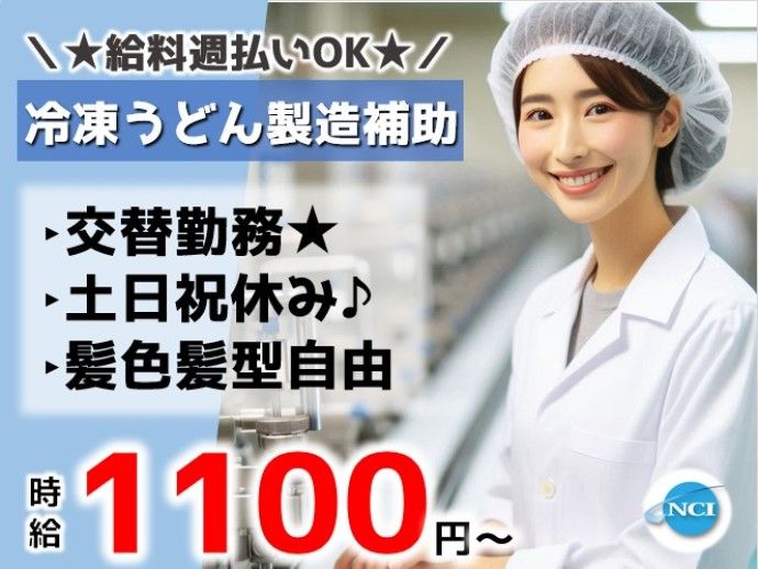 仕事内容 【冷凍うどんの生産補助】 ◎食品工場内で下記業務を行っていただきます! ・冷凍うどんの検視作業 ・コンベアーでのトレー補充 ・落ちたうどんの掃き掃除 ・コンテナ移動作業 ※基本的に立ち作業です! ■冷凍うどんの製造ラインで作業員の補助をするお仕事です!! ■自動的に流れるコンベアから時々麺が落ちてしまうので、落ちた麺を掃除したり、トレーを補充してラインを止めないようにスムーズな流れができるようにサポートします! ■ライン作業とは異なり、色々と動くので立ちっぱなしによる腰痛などの心配はありませんよ!! ■資格も経験もゼロでOK!コンベアーの下を潜ることがあるので身長の高い方は要注意です! ■基本は土日祝休みですが、土曜日だけ休日出勤となるケースがあります。 ===ここもチェック!=== ◇未経験者歓迎 ◇経験者歓迎 ◇有資格者歓迎 ◇フリーター歓迎 ◇ブランクOK ◇週4日以上OK ◇長期 ◇残業月20時間以上 ◇家庭都合休OK ◇40代以上応募可 ◇50代以上応募可 ◇学歴不問 =================