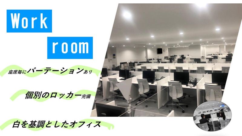 職場環境 ・リーダーがおり いつでも相談しやすい環境 ・座席毎にパーテーションがあり 集中してお仕事できます 喫煙所:喫煙所あり(屋内) 受動喫煙防止対策あり(屋内喫煙ルーム設置)