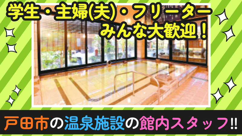 仕事内容 ━━━━━━━━━━━━━━━━━━━ ✿❀ 春に向けた増員募集スタート! ❀✿ ━━━━━━━━━━━━━━━━━━━ \戸田市の天然温泉施設でスタッフ募集!/ \ララガーデン川口そば・車&バイク通勤OK/ \アルバイトデビュー・ブランク明けも歓迎♪/ ✨全ポジション・全時間帯で募集中! ✨週2日~OK!短時間・フルタイムどちらも歓迎 ✨髪色自由!あなたらしく働けます ✨無料入浴&岩盤浴割引など特典多数 ✨副業・Wワーク・しっかり週5勤務もOK 春に向けての体制強化・欠員補充のため、 できるだけ多くの方とお会いしたい募集です! ★未経験スタートの方が多数活躍中★ ★研修・フォロー体制も整っています★ ▮ お仕事内容 ✨  ̄ ̄V ̄ ̄ ̄ ̄ ̄ ̄ ̄ ̄ ̄ ̄ ̄ ̄ ̄ ̄ ̄ ̄ ̄ 館内には複数のポジションがあり、 ご希望や適性・勤務時間に応じて配属します。 【主なお仕事】 ・フロントでの受付・ご案内 ・レストランでのホール/キッチン補助 ・浴室や脱衣所の巡回、備品補充、簡単な清掃 ・館内共用部のチェック・整備 など 「接客メインがいい」 「裏方中心で働きたい」 「短時間だけ」「安定してフルタイム」 ――そんな希望も相談OKです◎ ▮ 働き方いろいろ ✨  ̄ ̄V ̄ ̄ ̄ ̄ ̄ ̄ ̄ ̄ ̄ ̄ ̄ ̄ ̄ ̄ ̄ ̄ ̄ ⏰ 朝~昼 家事や予定の合間に働く方主婦(夫)さん ⏰ 日中フルタイム 安定収入を目指すフリーターさん ⏰ 夕方以降 授業後やWワークで働く学生さん など、 時間帯・ライフスタイルに 合わせた働き方が可能です! 男女問わず、幅広い世代の スタッフが在籍しています! ▮ 働く楽しさも魅力 ✨  ̄ ̄V ̄ ̄ ̄ ̄ ̄ ̄ ̄ ̄ ̄ ̄ ̄ ̄ ̄ ̄ ̄ ̄ ̄ ☀ お風呂・ロウリュウ利用OK ☆ 約4000冊の漫画読み放題 ☕ まかない補助あり 最初は覚えることもありますが、 周囲がしっかりフォローするので安心。 「困ったときはすぐ聞ける」雰囲気の職場♪ ===================== 働き方も、ポジションも、 始める理由も人それぞれ★ だからこそ、たくさんの選択肢を ご用意しています!! 少しでも気になった方は、 まずはお気軽にご応募・ご相談ください♪ この春、新しい仲間として 一緒にお店を盛り上げていきましょう!