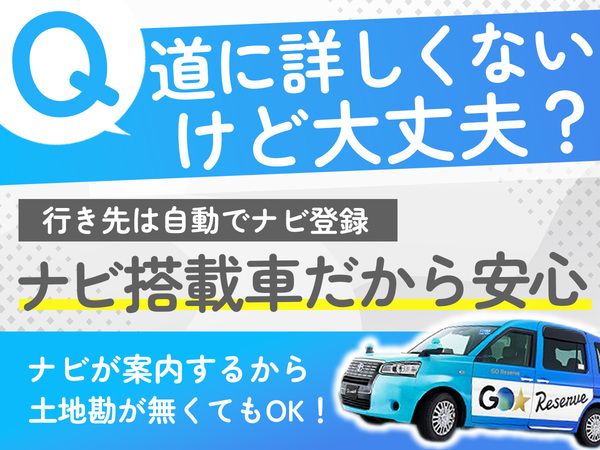 仕事内容 ==【 電話応募も受付中 】== ご相談だけでも大歓迎! TEL) 03-6834-4438 受付)平日9:00~18:00 =============== / 『GO』アプリからの注文限定♪ アプリドライバーはじめませんか? \ お客様はすべて『GO』アプリで予約した方のみ! ① アプリ経由で予約が入ったら ② お客様をお迎えに行って ③ 目的地までお送りして完了 これまでのドライバーとは違い、街中でお客様を探して走る流しはありません。 タクシー未経験からでもはじめやすいので、資格を活かすのにもぴったりです♪ \\ Q&Aでお答えします// ▼こんな心配ありませんか?▼ 【Q】普通のタクシーとどう違う?  ̄ ̄V ̄ ̄ ̄ ̄ ̄ ̄ ̄ ̄ ̄ ̄ ▶ いわゆる流しや駅での付け待ちなどは一切なし。 ご自身でお客様を探す必要はありません。 アプリ経由の注文のみをご対応いただきます! 【Q】どんな人が働いてるの?  ̄ ̄V ̄ ̄ ̄ ̄ ̄ ̄ ̄ ̄ ̄ ̄ ▶ 男女問わず幅広い年代の方が活躍中 元ドライバーさんやバス運転手さん、副業で…など様々♪ 経験・年齢・性別問わず活躍できるお仕事です! 【Q】トラブルが心配…  ̄ ̄V ̄ ̄ ̄ ̄ ̄ ̄ ̄ ̄ ̄ ̄ ▶ アプリ経由の注文のみなので安心 事前に目的地を登録をされているお客様なのでトラブルが少ないのも特徴! アプリ上での事前支払いなので、金銭のやり取りもありません。 【Q】土地勘が無いけど大丈夫?  ̄ ̄V ̄ ̄ ̄ ̄ ̄ ̄ ̄ ̄ ̄ ̄ ▶ 予約時に行き先はナビに登録済み! 案内に従って走行するだけで、目的地にカンタンに辿り着けます♪ ※お客様から道の指定があった際には、ナビ通りとはなりません。 * 「スキマ時間に」「Wワークとして」「しっかりフルタイム」…など、どんな働き方もウェルカム! オンライン面談も可能ですので、まずはお気軽にご応募ください◎