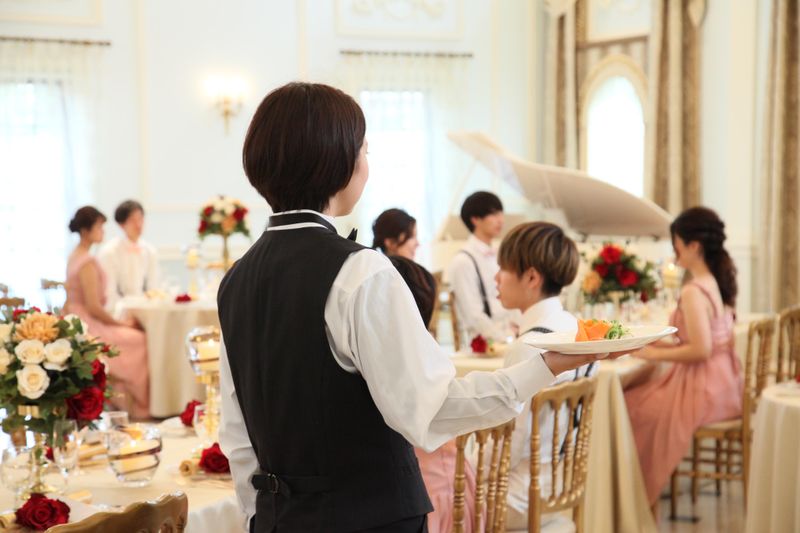 仕事内容 ◇ガラス張りのバージンロード◇ ◇10万個もの大粒のクリスタルが輝く◇ ◇白を基調とした華やかな会場◇ 新郎新婦様の門出を一緒にお祝いしませんか♪ 【具体的な仕事内容】 ◆披露宴や各種宴会での料理の配膳、飲み物の提供 ◆ウエディングプランナーのアシスタント業務 ☆―☆――☆おすすめポイント☆――☆―☆ 【1】初めてのお仕事でも安心 言葉遣いや所作はもちろん 挨拶などイチから丁寧に教えています♪ 接客スキルは社会に出てからも一生使えます◎ テーブルマナーなど、普段の生活では 学ぶ機会の少ない知識も付けることができます。 【2】柔軟シフトで学業&私生活と両立 10代~20代のスタッフがメインに活躍中! もちろん高校生もOK! お友達との応募もお待ちしております♪ 学業や私生活と両立できるよう 週1日~、1日2h~から働けます! 「平日は学校だから週末だけ」 「家事のスキマ時間だけ」 「長期休暇の短期だけ」など あなたの都合に合わせて働けます◎ ☆―☆―☆―☆――☆☆☆――☆―☆―☆―☆