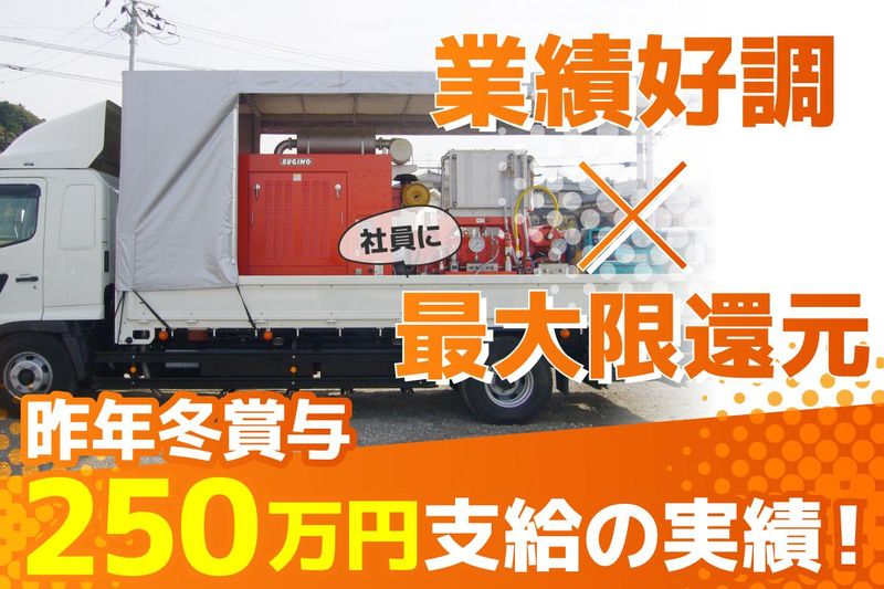 仕事内容 *・。*・。*・。*・。*・。* 利益はしっかり社員へ還元! *・。*・。*・。*・。*・。* 業績好調につき、依頼件数が増加。 新たにトラックを導入するなど 設備投資も進んでいます。 現場体制を強化するため、 新しいメンバーを募集しています。 昨年の冬賞与では ✨50万円~最大250万円を支給✨ 入社2~3年目の社員でも ✨50万円以上支給の実績があります✨ 「現場で頑張った分が きちんと収入として返ってくる」 そんな環境で働きたい方を歓迎します。 ⭐この仕事のPOINT ─────────────────── ✅年間休日実質125日以上 ✅繁忙期以外、残業ほぼなし ✅作業は必ず2~3名チーム制 ✅出張時の宿泊費・食費は会社負担 ✅建築・土木経験を活かせる仕事 ⭐仕事内容 ─────────────────── 工場内の産業用設備に付着した汚れを、 高圧洗浄機(60℃の温水)を 使って洗浄・除去する仕事です。 建築・土木現場での経験があれば 作業の流れは早く掴んでいただけます。 当社の機材や現場の進め方に慣れた後は ・より専門性の高い洗浄作業 ・現場作業のサポート ・チームの中心的役割 などもお任せしていきます。 ▶作業体制: 必ず2~3名のチーム制 ▶現場エリア: 東京、神奈川、千葉、茨城など ▶出張: 年数回あり (宿泊・食費全額会社負担) ⭐休みもしっかり確保できる働き方 ─────────────────── 繁忙期(3~6月、9~10月)以外は、 残業ほぼなし。 現場が早く終われば 午前中で帰宅できる日もあります。 また現場がお休みの日は そのまま休日になることもあり 年間休日は 「実質125日以上」です。 ※事前にご相談いただければ 業務状況を考慮しながら 3連休・5連休などの取得を 調整できる場合があります。 ⭐長く続けられる作業環境 ─────────────────── 温水を使用するため 夏場の現場は暑くなることもあります。 そのため ・こまめな休憩 ・無理のない作業工程 を徹底しています。 長く働き続けられる環境づくりを 大切にしています。