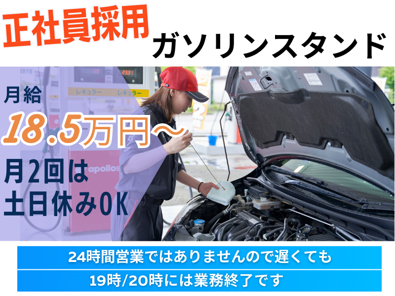 仕事の内容 ★アピールポイント★ ・未経験活躍中!ガソリンスタンド正社員募集! ・応募前の相談や、職場見学可能! ・月2回は土日休みOK! ・遅番は19時・20時には終わります! ・車好きスタッフが多数在籍! ー 【仕事内容】 当社が運営するガソリンスタンドで、給油や洗車、オイル交換などをお任せします。 〈1日の流れ〉 ▼出社 └当日の仕事内容を確認。制服に着替えて店舗へ ▼お客様対応 └来店されたお客様の対応をします。給油や洗車、オイル交換、会員カードの説明など。 ▼そのほかの業務 └接客の合間に清掃やタオルなどの備品準備、販売商品の陳列など。 24時間営業ではありませんので遅くても19時or20時には業務終了です。 入社後は、まず給油や窓ふき業務からスタート。 慣れてきたら、オイルやタイヤなどの販売、タイヤ組換脱着作業、洗車作業をお願いします。 作業内容や手順は先輩社員がマンツーマンで、イチから丁寧に教えるので未経験者も安心。 「このお仕事の魅力」 ★・危険物取扱者免状乙種4類 ・MT運転免許 免許や資格は弊社の資格取得支援制度で採用後の取得も可能です! キャリアアップとともに給与もプラス手当つきます♪ ★タイヤ交換・キレイに洗車するコツを習得! 日常生活でも役立つスキルが身に付くのが嬉しいトコロ。 ★月2回程、土日休みが可能◎ 週末に家族やプライベートの時間をちゃんと作れます。 ★車好きの方が多いので、趣味の話で盛り上がる♪ ー \キャリアアップ可能/ 店舗を任せられるようになったり、接客の能力、技術の向上によりどんどんキャリアアップが可能です☆ ▼主任 ▼サブマネージャー ▼マネージャー ▼店長 全てに役職手当がつくので、店長になれば月給も25万以上で高収入が見込めます。 ー ≪勤務地≫ 【浦川原給油所】 ・新潟県上越市浦川原区顕聖寺63-4 その他上越市に5か所の給油所があり、転勤の可能性があります。 【上越インター給油所】 ・新潟県上越市下門前1704 【戸野目給油所】 ・新潟県上越市戸野目1007-1 【木田給油所】 ・新潟県上越市新光町2-2-15 【春日山給油所】 ・新潟県上越市春日山町2-14-3 【新井中央給油所】 ・新潟県妙高市石塚町1-925-13 ※詳細はお問い合わせください。 - 『このお仕事の魅力まとめ』 ○接客や車好きな方 ○体を動かすことが好き ○未経験活躍中 ○月2回は土日休みOK ○月給18万~25万で稼げる ○昇給・賞与有 ○正社員で安定して働ける ○ガソリンスタンドの正社員 -