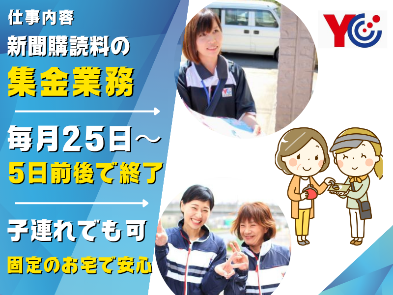 仕事内容 読売新聞をご契約いただいているお客様宅に 集金に伺うお仕事! 難しい内容は一切ありません。 ◤ ̄ ̄ ̄ ̄ ̄ ̄ ̄ ̄ ̄ ̄ ̄ ̄ ̄ ̄◥ #毎月25日~5日間前後でほぼ終了 #同じエリアの担当制 #在宅率高め #自家用車使用可 #営業・勧誘は「一切」ありません #ご自宅から直行・直帰できます ◣______________◢ POINT①電動アシスト自転車を貸出します 集金スタッフの約8割は自家用車使用ですが、 難しい方は電動アシスト自転車やバイクを お店が無料で貸し出しいたします! ※ご希望に沿った手段を選べます POINT②業務は毎月5日間前後だけ 毎月25日から集金をスタートし、 ほぼ月内で担当エリアの集金は完了! 早い人は3日で8割終了します。 こんな効率的な仕事はありません(笑) POINT③このお仕事の魅力 ①場所・時間に拘束されない ②何か急用があっても自由が利く ③家からそのままお仕事→直行直帰 ④いつでもスマホが見れる ⑤毎月同じお宅、同じルーティン POINT④こんな方が活躍中 子供を送り出した後に業務する方、 学童や保育園にお迎えに行き、 子連れでそのまま業務をしている方 など働き方はさまざま! >>今回の募集定員<< →1名