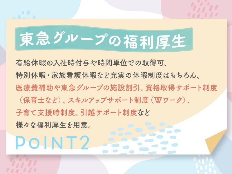 仕事内容 ✨2026年4月新規受託が決定  ̄ ̄ ̄ ̄ ̄ ̄ ̄ ̄ ̄ ̄ ̄ ̄ ̄ ̄ ̄ ̄ ̄ ̄ ̄ ̄ 新宿区「余丁町学童クラブ」東新宿駅エリア ※新施設・既存施設ともに事業拡大のため増員募集中 ※東京都内(新宿区や練馬区、杉並区、大田区など)に多数施設あり ✨この求人のアピールポイント  ̄ ̄ ̄ ̄ ̄ ̄ ̄ ̄ ̄ ̄ ̄ ̄ ̄ ̄ ̄ ̄ ̄ ̄ ̄ ̄ ✔ 未経験OK・20代~40代を中心に活躍中◎ ✔ 年間休日120日+各休暇制度&充実の福利厚生 東急グループならではの安心感と働きやすさ◎ ✔ 子育て支援制度&育休取得率も100%! 子育てとの両立を会社がサポート! ✔ 研修制度が充実!未経験から活躍できる◎ 自分らしいキャリアを描いて働く! ✔ 5年連続「働きがいのある会社」 ベストカンパニー選出! 東急グループの一員として、子育て支援事業を展開する当社。 学校でも家庭でもない「子どものサードプレイス」をコンセプトに、学童保育・児童館を79施設、保育園5園を運営しています。 今後の事業拡大に向け、キッズコーチ(学童保育・児童館指導員)を増員募集! わたしたちと一緒に、子どもの成長をサポートしていきませんか。 ※2026年10月入社まで可 ✨仕事内容  ̄ ̄ ̄ ̄ ̄ ̄ ̄ ̄ ̄ ̄ ̄ ̄ ̄ ̄ ̄ ̄ ̄ ̄ ̄ ̄ 学童保育・児童館でキッズコーチとして、一人ひとりの個性や可能性を引き出す「コーチング」で子どもたちの成長をサポート。 放課後と長期休みを価値ある時間にするために、日常プログラムはもちろん、学校や家庭では経験できないイベントプログラムを通して子どもたちの「社会につながる人間力」を育んでいます。 また、学校での出来事を聞いたり、一緒にイベントを楽しんだり、時には保護者や先生にも言えないような相談にのることも。 キッズコーチは子どもの心の拠り所となる存在です。 >>具体的には ・生活全般の保育業務 ・イベントプログラムの企画や運営 ・保護者とのコミュニケーション ・上記に関連する事務業務 現在、募集している「公設民営型(学童保育・児童館)」の施設は、教員の方と子どもたちの情報交換をしたり、地域の方を招いたイベントを企画するなど、学校や地域との連携もやりがいの一つです。 ✨1日の流れ(学童保育の例)  ̄ ̄ ̄ ̄ ̄ ̄ ̄ ̄ ̄ ̄ ̄ ̄ ̄ ̄ ̄ ̄ ̄ ̄ ̄ ̄ 10:00 出社・子どもたちを迎える準備 12:00 ミーティング 14:30 子どもたちを出迎え 16:30 外遊び、おやつの提供 18:00 子どもたちのお見送り 18:30 翌日の準備 19:00 退社 ✨充実した研修制度  ̄ ̄ ̄ ̄ ̄ ̄ ̄ ̄ ̄ ̄ ̄ ̄ ̄ ̄ ̄ ̄ ̄ ̄ ̄ ̄ 民間学童保育のリーディング企業として培ったノウハウを活かし、「子どものほめ方」「コーチング」など具体的な保育研修から、医療・アレルギーやビジネスマナーなど専門知識を学ぶものまで多彩な研修プログラムを用意しています。 大学で教員免許を取得したけれど、この業界は未経験という方も、経験者でスキルアップを目指したい方も安心して入社いただけます。 研修の一例 ◎新人研修(保育基礎/リスクマネジメント/コーチング/学童保育基礎知識) ◎階層別研修(リーダー候補/責任者/エリアマネージャー/2,3年目研修) ◎保育研修(コーチング/ひきつけ方/ほめ方/けんかの仲裁) ◎専門分野研修(医療/アレルギー/上級救命) ✨資格取得支援&充実の福利厚生  ̄ ̄ ̄ ̄ ̄ ̄ ̄ ̄ ̄ ̄ ̄ ̄ ̄ ̄ ̄ ̄ ̄ ̄ ̄ ̄ ✔ 資格取得サポート(保育士や放課後児童支援員など) ✔ 医療費補助(通院時3,000円以上に対し支給) ✔ 東急グループ施設割引(宿泊施設等の利用補助) ✔ 各種お祝い金:結婚や出産、入学祝い金等 ✔ 東急グループ保険加入 ✔ 引越支援一時金(10万円) ✔ 住宅支援制度:独身寮(規定あり) ✔ 子育て支援制度 ・産前産後休暇 ・育児休業(現在、育休取得率100%) ・お子さんが小学校3年生までの時短勤務 ・KBCほいくえん/キッズベースキャンプ優先利用&割引 ・家族看護休暇 ✔ Wワーク制度(スキルアップサポート) ✔ 退職金制度 ✨勤務地について  ̄ ̄ ̄ ̄ ̄ ̄ ̄ ̄ ̄ ̄ ̄ ̄ ̄ ̄ ̄ ̄ ̄ ̄ ̄ ̄ 以下の新宿区内やその他23区内に多数あり ✔ 余丁町学童クラブ(東新宿駅)※2026年4月オープン ✔ 花園小学校内学童クラブ(新宿駅)※2025年4月オープン ✔ 戸塚第二小学校内学童クラブ(高田馬場駅) ✔ 高田馬場第二学童クラブ(高田馬場駅・西早稲田駅) ✔ 鶴巻小学校内学童クラブ(早稲田駅) ✔ 中井児童館(中井駅) その他、目黒区(目黒/中目黒/祐天寺/都立大学など)や大田区(蒲田/大森/馬込など)、練馬区(上石神井/石神井公園など)で募集中♪ 面接時、お住まいの最寄り駅と最新の募集状況をもとに入社時の勤務場所を確認させていただきます。 ✨社員インタビュー  ̄ ̄ ̄ ̄ ̄ ̄ ̄ ̄ ̄ ̄ ̄ ̄ ̄ ̄ ̄ ̄ ̄ ̄ ̄ ̄ Aさん(28歳・入社3年目) 「未経験からのスタートでしたが、先輩たちのサポートのおかげで安心して仕事を始めることができました。 子どもたちとのふれあいを通じて、自分自身も成長していると感じています。毎日が新しい発見の連続で、とてもやりがいを感じています。」 Bさん(31歳・入社5年目) 「元々は銀行員でしたが、子ども