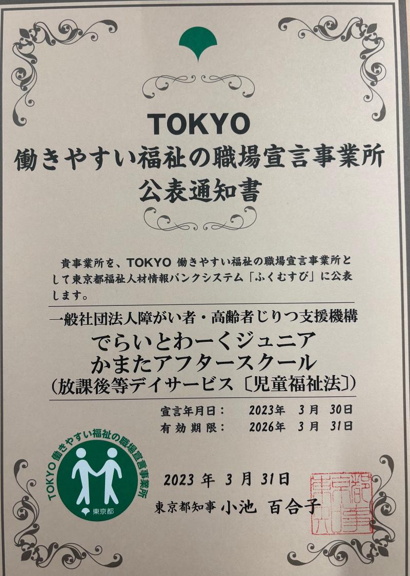 駅徒歩5分。気づけば長く働いている、そんな職場です。「TOKYO働きやすい福祉の職場宣言」の宣言事業所