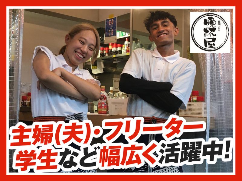 勤務時間 シフト制 勤務時間備考 月~木・日は18:00~23:30、金・土は18:00~24:00 ☆上記時間内で週2日~、1日3h~OK ☆平日のみ、土日祝のみ、土日祝休みなどご希望をうかがいます。 ☆シフトは1ヶ月毎の作成です! ☆「決まった時間で」「短時間で」の勤務も可能です。 ☆長期でも短期でもOK!気軽にご相談ください! ★分煙店舗です♪(別途喫煙室あり) この求人のポイント ・週2日~、1日3h~OKでシフト融通◎固定シフトもOK! ・交通費も月1万円迄支給! ・駅チカ店舗で通勤もラクラク♪ ・まかない制度有!メニューから好きな料理やチャレンジしたいものを食べるのもOK♪ ☆20代、30代、40代、50代、60代のスタッフが活躍中 ⇒若手・ミドル・シニア、学生、主婦・主夫、フリーター…と 性別問わず、幅広い年代の方が活躍中♪ お互いフォローしながら営業しています! ⇒ライフスタイルに合わせて働けます◎ 「決まった時間で」「ガッツリ働きたい」等、シフト相談お気軽に! ☆人と接することが好き・美味しい物や料理が好きな方にオススメのお仕事♪ ★魚をさばける方歓迎♪ 様々なポジションがあるので、様々なことに挑戦できます! やりがいもいっぱい◎