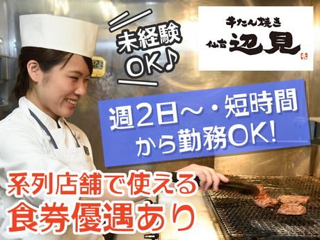 その他 未経験OK、大学生歓迎、新卒・第二新卒歓迎、フリーター歓迎、シニア活躍中、午後のみOK、短時間OK、長期歓迎、平日のみOK、土日祝のみOK、週1、2日からOK、週3日以内OK、週4日以上OK、時間や曜日、シフト制、昇給あり、交通費支給、時給1000円以上、制服あり、外国語が活かせる・身に付く、駅チカ・駅ナカ 【ブランド名】 牛たん焼き仙台辺見 【事業内容】 上質な牛たんを一枚ずつ丁寧に炭火で焼き上げる、厚切り牛たん焼き店