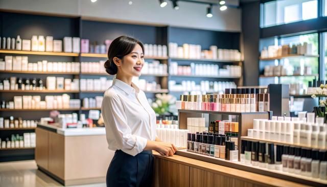 中国語・英語・ベトナム語で接客する化粧品健康食品販売スタッフ