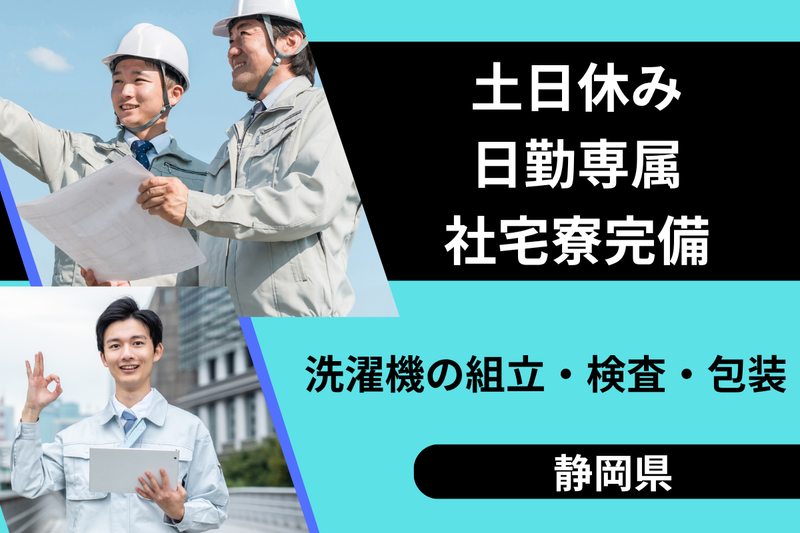 仕事内容 ●寮・社宅完備 ●20代~50代活躍中 ●男女活躍中、未経験・初心者活躍中 ●日勤のみ、土日休み、正社員登用あり ●車・バイク通勤可能 【 仕事内容 】 洗濯機の部品を組み付ける作業です。 詳しい仕事内容は・・・ 【組立】 洗濯機の内部部品を組付けます。 基本的には、決まった部品を 電動ドライバーで取り付け。 指示書に従って、所定の位置に固定します。 重量物は少なく、体への負担は少なめです♪ 長期で就労したい方にピッタリなお仕事です!! 他、検査・包装・運搬の作業などもあり! ※業務を遂行する上で必用な要素として以下がございます ・立ち通しの作業に対応可能な方 ・配属工程の作業員と連携を取りながらのお仕事が可能な方 《 即入寮OK!応募から爆速でご案内! 》 ・即入寮OK! 「急ぎで内定をゲットしたい」 「できるだけ早めに寮に入りたい」 そんなあなたにオススメ! ・応募から最短2時間で面談可能! 応募後、すぐに電話もしくは メールでご連絡いたします! 最短2時間後には面談実施も可能! ぜひ面談時に「早めの採用希望」 とお伝え下さい♪ 《 日勤専属で自分の時間とのバランスも◎ 》 ・交替勤務は苦手かな・・・ ・夜はぐっすり眠りたい! そんなあなたに日勤専属がオススメ! 17時には仕事終了! 夕方以降はこんな感じの生活▼ 毎週の楽しみ!ドラマ視聴 今日は多めに寝よう!ゆっくりお風呂に入って 早めに就寝・・・zzz 友人と時間を合わせてゲームをしたり 日勤の生活で、プライベートも充実させませんか? 《 快適!社宅完備 》 家具家電付きの寮を完備! テレビ/冷蔵庫/電子レンジ/机/洗濯機/布団/カーテン などがついているので、自分で揃える必要なし! 引っ越しに伴う諸経費がかなり抑えられます!