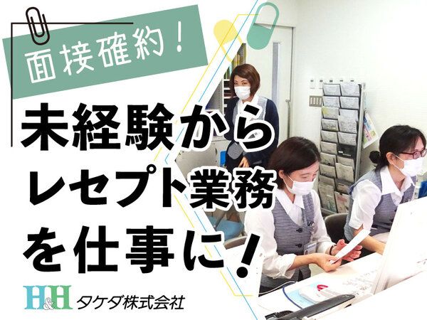 仕事内容 ■アピールポイント ・人気のレセプト業務!大きな病院で安定して働けますよ。 ・資格取得を目指している未経験の方も活躍できます! ・高卒OK!学歴不問です ・子育て中のママパパ、主婦(夫)の方も活躍中! ・残業なしで働きやすい職場環境です。 ・面接は1回のみ!面談形式なので気になることはなんでも聞いてくださいね。 ■お仕事内容 大学病院内のレセプト業務を行っていただきます。 【具体的には】 ・レセプトの内容についての点検や訂正も行います 医療事務の経験のない方でも全く問題ありません。現在働いている人も、ほとんどが未経験者です。 病院で働いてみたいと考えている方、ぜひ、連絡をください。 女性スタッフ活躍中。20~60才の方が働いています。小さいお子さんのいる方も多数います。 女性スタッフが約70名働いています。20歳~60歳の方がいます。小さいお子さんがいる方や、介護のある方、独身の方、いろんな人が働いています。皆で協力しながら仕事をしています。ちょっと働いてみたいと思っている方、ぜひ、連絡下さい。子育てしながら働いている方、たくさんいます。 <以下のご経験がある方も活躍しています。> コールセンター、事務、問い合わせ対応、データ入力、書類作成 総務、バックオフィス業務、一般事務、経理事務、歯科事務、薬局事務、介護事務 ■タケダはレストランの運営や医療事務などの医療現場サポート、施設の清掃・警備等を行っています。 設立から40年以上の歴史を誇るタケダ株式会社。多彩なシーンに合わせたサービスを迅速・的確に提供していきます。
